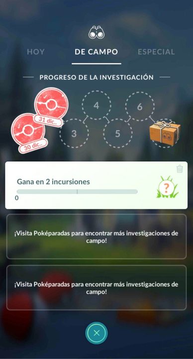 Una vez que ya estás familiarizado con visitar las Poképaradas y atrapar pokémon en general, es tiempo de completar algunas Investigaciones. Los objetivos de estas misiones son sencillos: atrapar un cierto número de pokémon o hacer tres lanzamientos perfectos consecutivos, que serán recompensados con objetos de alto nivel o pokémon poco frecuentes.