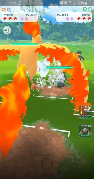 Una vez que encuentres un pokémon y quieras atraparlo, el primer paso es acercarse lo suficiente para interactuar con él. Y cuando este se encuentre dentro del círculo alrededor de la posición del jugador, hay que tocarlo en la pantalla para iniciar una batalla; esto abrirá una nueva pantalla en la que se llevará a cabo toda la acción.