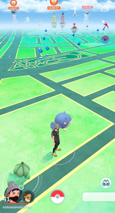 Las otras estructuras principales que se verán en el mapa son los Gimnasios. En estos lugares puedes hacer que tus Pokémon se midan en combate con los de otros jugadores, siempre y cuando tengas el nivel necesario. En los Gimnasios es donde armas tu equipo de Pokémon para tratar de vencer al equipo que está defendiendo la estructura, y si lo consigues, serán tus Pokémon los que el resto tendrá que vencer para tomarse el Gimnasio. De todas formas, por esto no hay que preocuparse mucho aún, ya que el juego te dirá claramente cuando estés en posición de competir. Y además, en los Gimnasios también se pueden conseguir nuevos objetos, tal como en las PokéParadas.