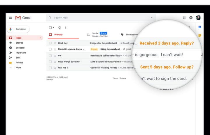Además, para aquellos que tienen problemas para mantenerse al día con los correos electrónicos, el nuevo Gmail te «empujará» de vez en cuando a responder correos electrónicos importantes que podrías haber olvidado.