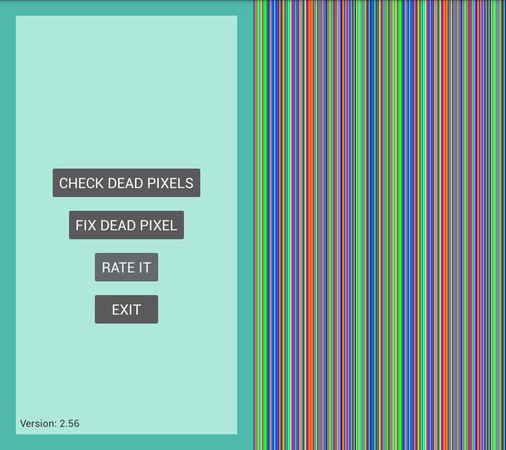Usa la función Verificar pixeles muertos para buscar los que estén en esa condición en pantalla. Si encuentras algo, cambia a Reparar píxeles muertos, que mostrará ruido de colores y bandas de diferentes colores durante un periodo establecido. Los desarrolladores recomiendan que lo ejecutes durante al menos 10 minutos, pero si lo haces durante un par de horas puede brindar mejores resultados. Es probable que tu dispositivo use mucha energía al ejecutar esta aplicación, por lo que te sugerimos verificar la carga antes de comenzar.