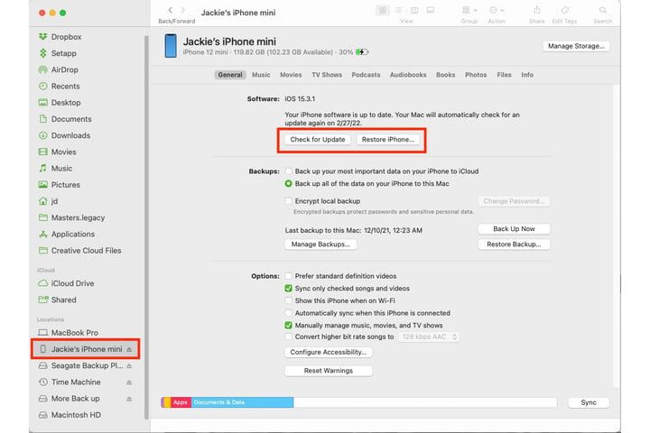 Paso 5: en iTunes o Finder en tu computadora, elige Actualizar o Restaurar tu dispositivo para comenzar a restablecer tu iPhone.