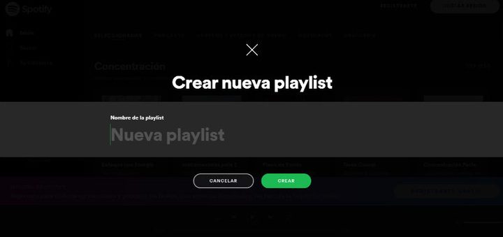 El otro es una combinación de teclas que funciona cuando tienes abierta la plataforma en tu computadora: Ctrl + N. Se activa una ventana en donde tienes que escribir el nombre de la playlist y su descripción.
