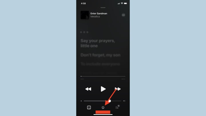 Paso 2. Respecto a Apple Music, el botón de AirPlay 2 se encuentra debajo del área de control de la reproducción de la pista que estás escuchando. El elemento se ve un poco diferente: en lugar de la combinación de rectángulo y triángulo, hay una que contiene tres círculos interrumpidos igualmente por una flecha. El proceso que sigue es similar, es decir, elige tu Roku para disfrutar de tu música en la pantalla o barra de sonido compatible con AirPlay 2.