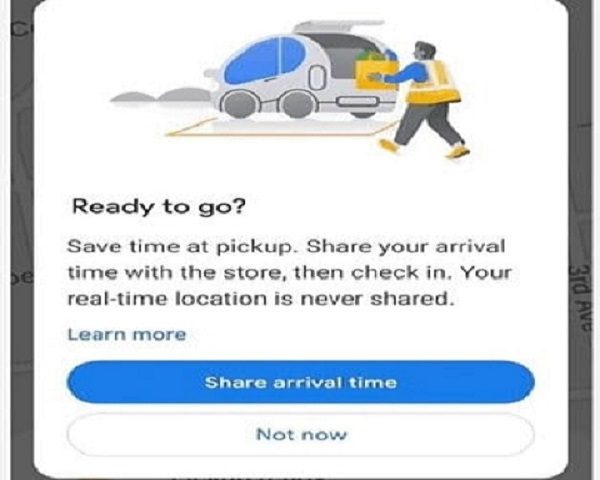 La función les permite a los usuarios compartir con la tienda su hora estimada de llegada haciendo clic en el botón Compartir Hora de Llegada, de modo que ambas partes puedan acordar recoger el pedido sin contacto. El programa se encuentra en las primeras etapas y solo está disponible en lugares seleccionados.