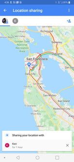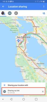 Si con quien vas a compartir el sitio donde te encuentras tiene una cuenta de Google, esta compartirá tu ubicación con las personas designadas en la app Google Maps o enviará un enlace que pueden tocar. También puedes compartirla vía un host de otras apps, como Messages. Quien quiera que comparta su ubicación contigo tendrá su propia pestaña en la parte superior de tu pantalla y puedes tocarla para ver dónde se encuentran.
