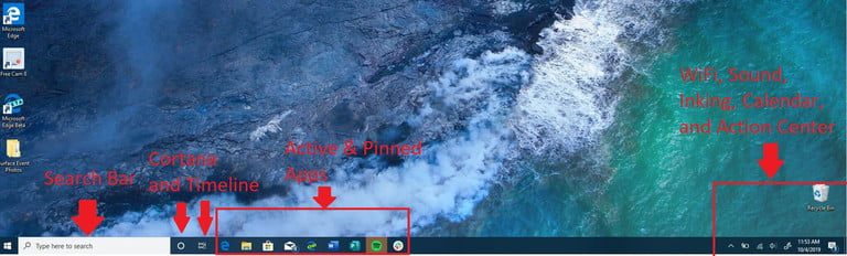 Lo siguiente que debes aprender a usar en Windows 10 es la Barra de tareas. Esta área ha mejorado considerablemente desde Windows 7. Observémosla de izquierda a derecha.