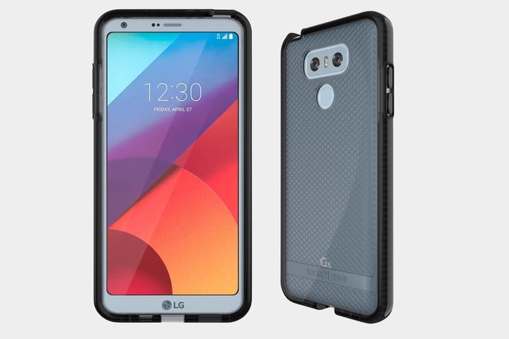 A pesar de ser delgada, esta funda ofrece una gran protección contra las caídas. Mantendrás tu LG G6 a salvo, incluso de golpes de hasta 10 pies. Es una funda translúcida con un patrón de verificación y una sección de protección más gruesa y oscura que absorbe los impactos. Las aberturas son precisas, por lo que es fácil acceder a los puertos y utilizar la cámara o el sensor de huellas dactilares. Viene en diferentes colores, por lo que podrás conseguirlo con una parte posterior transparente, en rosa o azul, y un paragolpes blanco, o una parte posterior gris con un paragolpes negro.