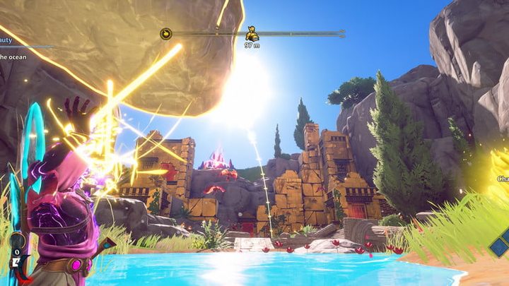 Al estilo más puro de Ubisoft, Immortals Fenyx Rising comienza con el personaje principal despertando en una playa, con un hermoso mundo abierto esperando ser explorado. Es tentador, pero no lo explores aún. Las primeras dos horas del juego sirven como un tutorial extenso, entregándote las herramientas que necesitas para el resto del juego. Eso incluye el Arco de Odiseo, el Vaso de Aiolos y las Alas de Ícaro.