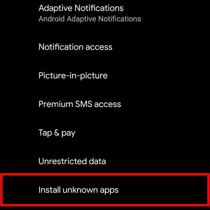 Paso 3: toca Instalar aplicaciones desconocidas.