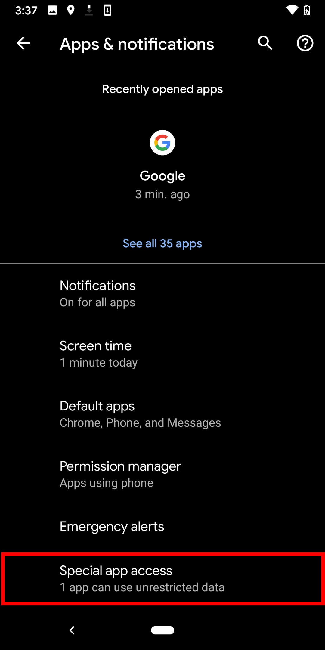 Paso 4: selecciona Acceso a aplicaciones especiales.