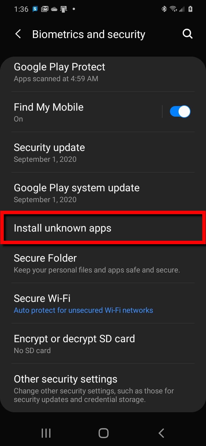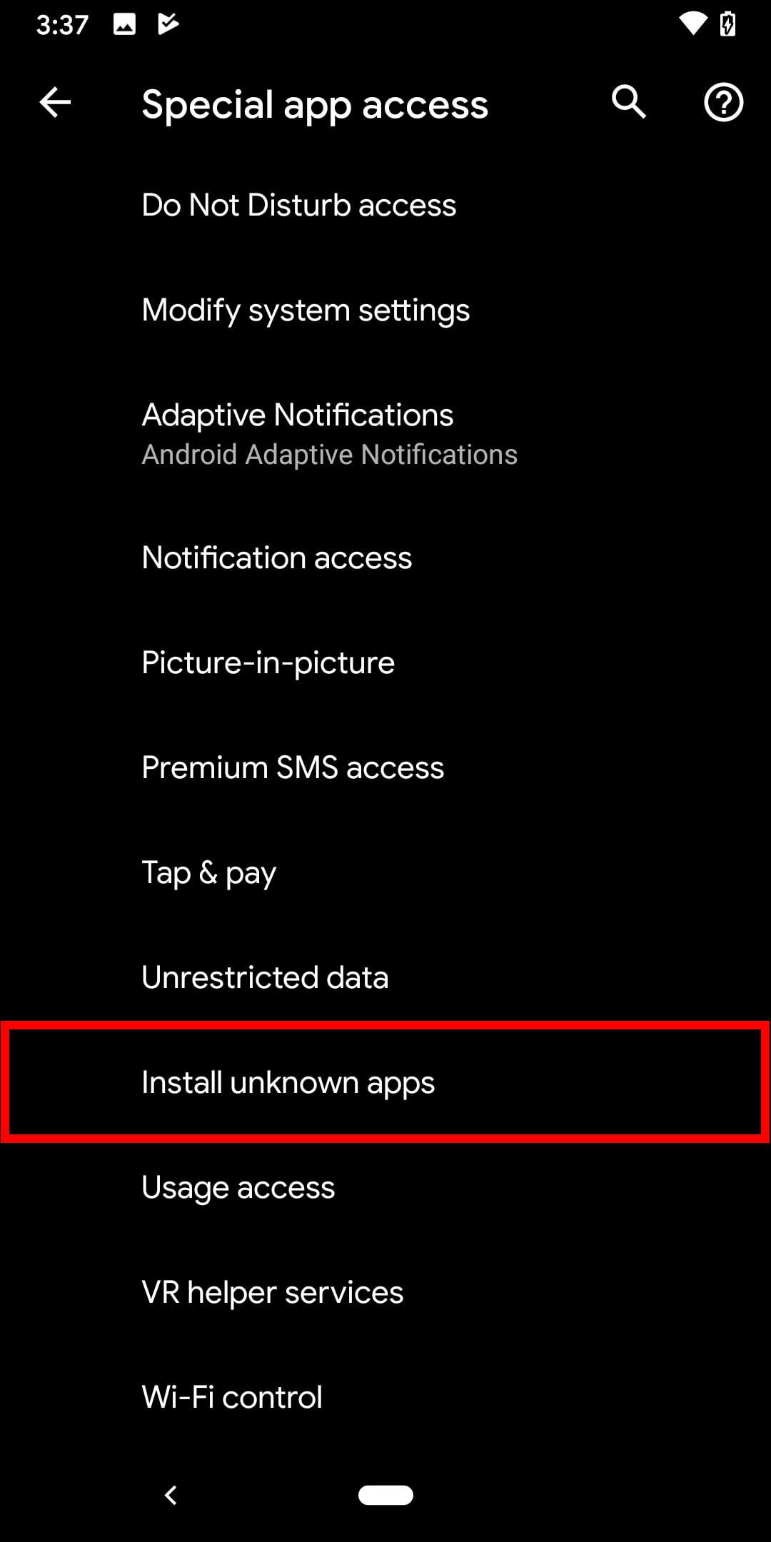 Paso 3: toca Instalar aplicaciones desconocidas.