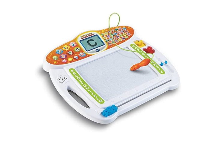 En lugar de los antiguos tableros mágicos donde todo lo que hay que hacer son garabatos todo el día, regálales a tus niños un juguete educativo. Podrán aprender cómo escribir y dibujar con útiles animaciones. Lo principal es que serán introducidos a las bases de la escritura y ortografía, empezando con su nombre propio. El juguete VTech también puede motivarlos a dibujar formas básicas y objetos.