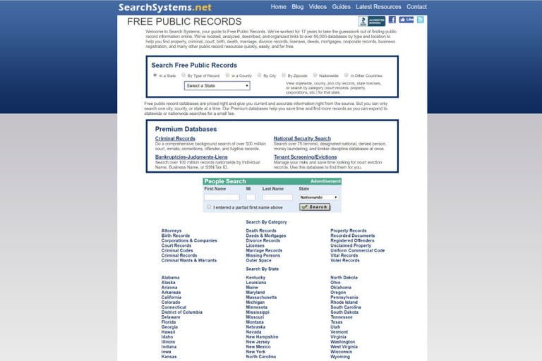 Searchsystems.net es un punto de partida impresionante y confiable si buscas información de registros públicos en Estados Unidos y varios países más. Con acceso a más de 70,000 mil bases de datos, el sitio permite buscar distintos tipos de información pública para luego dirigirte al sitio que contiene dichos registros. Es gratuito y fácil de usar, aunque solo sirve de portal hacia otros sitios de registros públicos.
