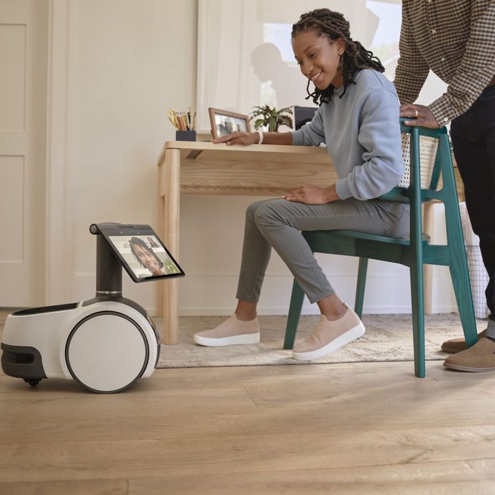 Amazon presenta Astro, un robot inteligente que utiliza tecnologías de inteligencia artificial, visión computarizada y reconocimiento de voz para ayudar en diversas tareas de la casa.