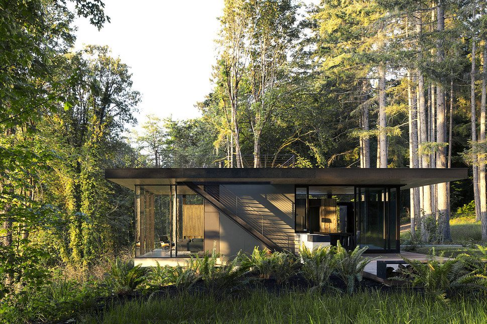 Situado al sur de Puget Sound, este acogedor hogar se desarrolla a partir de un esquema cromático estéticamente agradable, el cual le permite integrarse a la perfección en el entorno que le rodea. Haciendo uso de materiales naturales como el cedro, MW Works logró construir una cabaña que parece una parte más del paisaje. Gracias a ella, la firma obtuvo una serie de nominaciones (y reconocimientos) del Instituto Americano de Arquitectos, incluye el premio de honor nacional 2016.