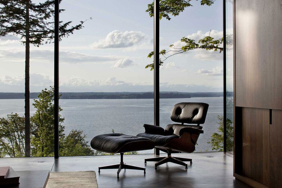 Dentro de la casa, los arquitectos instalaron una serie de ventanas de suelo a techo, las cuales permiten la entrada abundante luz natural. Teniendo en cuenta el hogar se encuentra frente a un gran lago, las puestas de sol (y el color del cielo de dichos atardeceres) son absolutamente incomparables. Además, el uso de estas ventanas da al hogar una sensación de transparencia que, a su vez, permite a los propietarios sentirse completamente integrados en el entorno que les rodea.