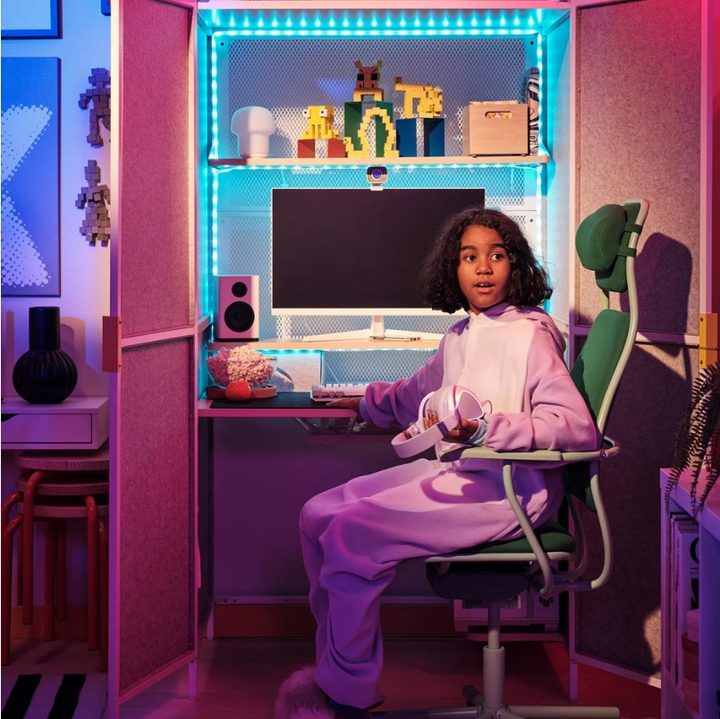 - La colección Brännboll también incluye una “estación de juegos” que se pliega en algo parecido a un armario, con una mesa plegable, almacenamiento integrado en torre de PC y gestión de cables.