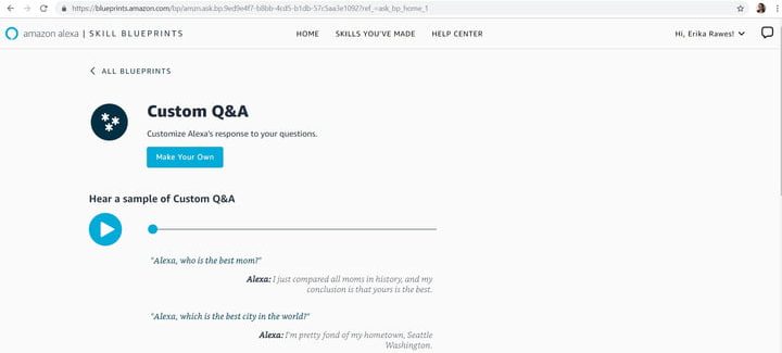 Con su sección Blueprints, Amazon hace que sea bastante fácil incluso para personas sin conocimientos de tecnología desarrollar habilidades y publicar sus propias ideas. Como resultado, puedes personalizar tu altavoz inteligente con contenido que sea relevante para ti y tu familia, y puedes compartir tus creaciones con el mundo.