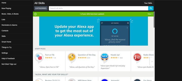 Puedes comenzar a interactuar con la habilidad utilizando el comando de voz «Alexa, abrir [nombre de habilidad]». Después de activar la habilidad, puedes empezar a usarla, para asegurarte de que funciona como esperabas. Si no es así, puedes realizar cambios en la sección Skills You’ve Made.