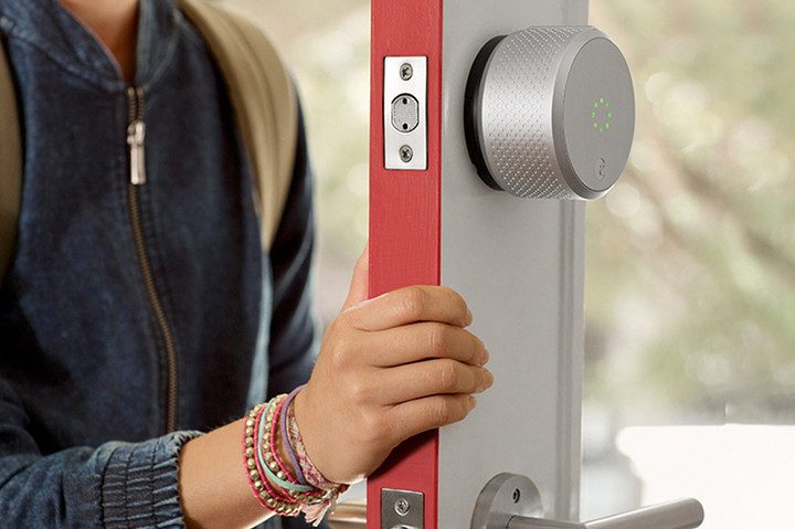 El August Smart Lock es uno de los pocos dispositivos que no te obliga a instalar un aparato nuevo enorme que remplace el cerrojo original. Simplemente remplaza una parte del original, lo cual lo hace ideal para arrendatarios.