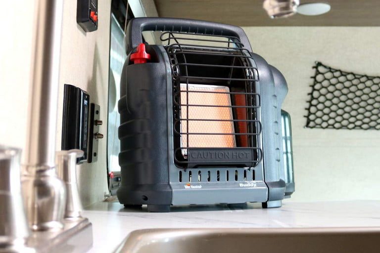 Las características más importantes cuando se trata de calentadores para tiendas de propano son las de seguridad. El Calentador Radiante RV Portátil y Seguro para Interiores Mr. Heater F232017 MH9BXRV tiene todas las características de seguridad que necesitas, además de que calienta hasta 225 pies cuadrados con una eficiencia cercana al 100 por cien (eso significa muy poco combustible desperdiciado). Es seguro para usar en interiores o exteriores y se apaga automáticamente si se vuelca, detecta bajos niveles de oxígeno en tu tienda o si se apaga la luz piloto.