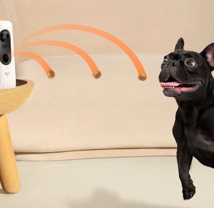 La cámara se puede conectar a la aplicación de eufy (para que recibas notificaciones mientras vigilas a tus mascotas) y es capaz de lanzarle golosinas a tus amigos peludos. No puede controlar la cantidad de golosinas lanzadas, pero puedes llenar el dispensador cuando quieras. Por último, el contenedor de alimentos es lavable, así que es posible meterlo en el lavavajillas al final de cada día.