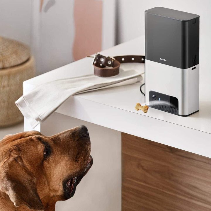 La cámara puede almacenar hasta 680 gramos de golosinas, y con la aplicación Petcube, puedes elegir la distancia para lanzarlas. Esto, además de ser divertido para tu mascota, puede funcionar como un entrenamiento cuando no estás cerca. Es una de las cámaras para mascotas más intuitivas y avanzadas del mercado.