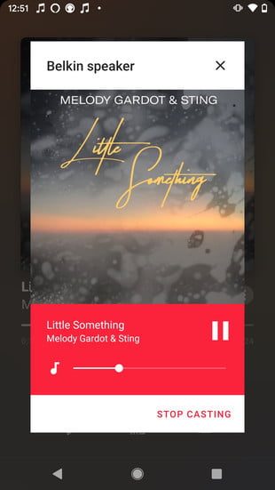 Una vez que la sesión de casting ha comenzado, el ícono de transmisión cambiará de un rectángulo vacío a un rectángulo relleno. Puedes controlar la reproducción o finalizar la sesión de transmisión en cualquier momento tocando el ícono de Transmitir nuevamente.