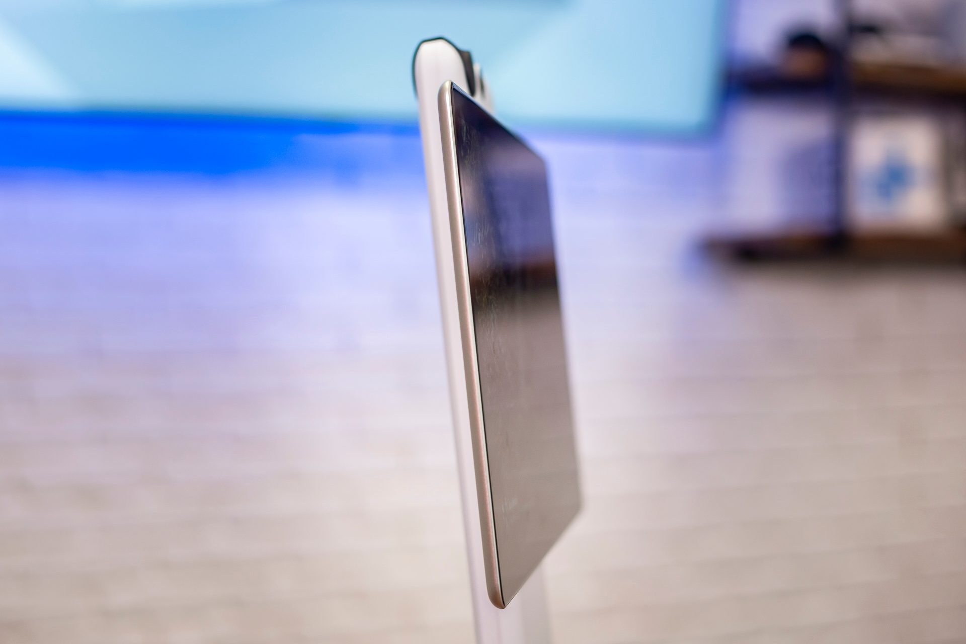 Primero, hablemos del diseño y el tamaño. Mientras que Portal cuenta con una pantalla de 10 pulgadas, Portal Plus cuenta con una increíble pantalla de 15.6 pulgadas. Es más grande que muchas computadoras portátiles y se parece a una tableta gigante montada en una base alta y estrecha, con casi 18 pulgadas de alto.