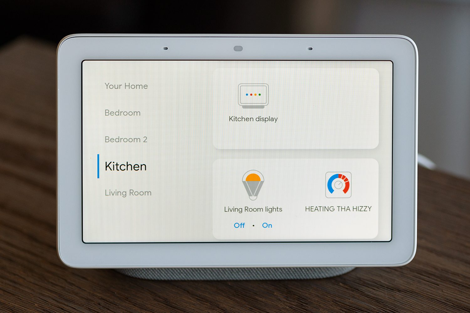 Google Home Hub está en su mejor momento cuando está conectado a una casa inteligente. Nos gusta la pantalla desplegable que nos brinda acceso y control instantáneos sobre todos los otros dispositivos conectados. Todavía existe la opción de usar tu voz para controlar luces, cerraduras, televisores y más, pero ahora puedes ver un menú desplegable con una lista bien organizada de dispositivos conectados y el estado de cada uno, en un panel fácil de usar.