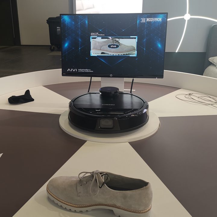 Es más, en el stand de ECOVACS en IFA 2019, hemos podido comprobar su potencial. En una especie de ruleta con el modelo DEEBOT OZMO 960 en el centro y varios objetos a su alrededor, hemos podido ver cómo el DEEBOT OZMO 960 es capaz no sólo de saber que tiene un objeto delante suyo, sino que, además, es capaz de identificarlo como un zapato o un trapo, por ejemplo.