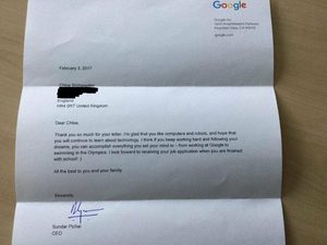 Cuál sería la sorpresa de la familia cuando, unos días después, les llegó en el correo una respuesta personal del “Querido Jefe Google” con el encabezado oficial de la compañía, en la que Pichai escribió: