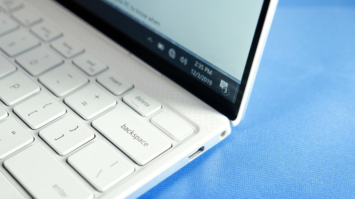 Sin embargo, el teclado de borde a borde tiene un inconveniente. No deja mucho espacio para los puertos. Solo dos Thunderbolt 3 (y una ranura para tarjeta Micro SD) flanquean cada lado, dejando un solo puerto USB-C de los tres que tenía el XPS 13 anterior. Ese es el precio que paga por el nuevo teclado y el perfil más delgado: ya no cabe un puerto USB-C adicional.