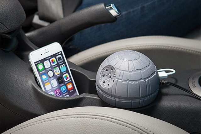 Este cargador oficial de Star Wars provee batería a tu celular mientras te encuentras en tu auto. Cuando lo prendes, escucharás sonidos de disparos de naves espaciales o cuando conectas algo. Viene con tres niveles de volumen, que puedes ajustar.