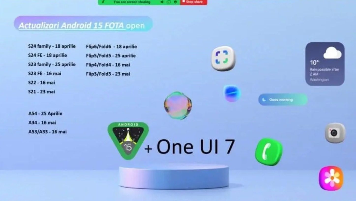 El usuario de Reddit Chewe_dev publicado una captura de pantalla de un supuesto taller con Samsung Rumania, que menciona las fechas de lanzamiento de Android 15, presumiblemente para la región rumana: