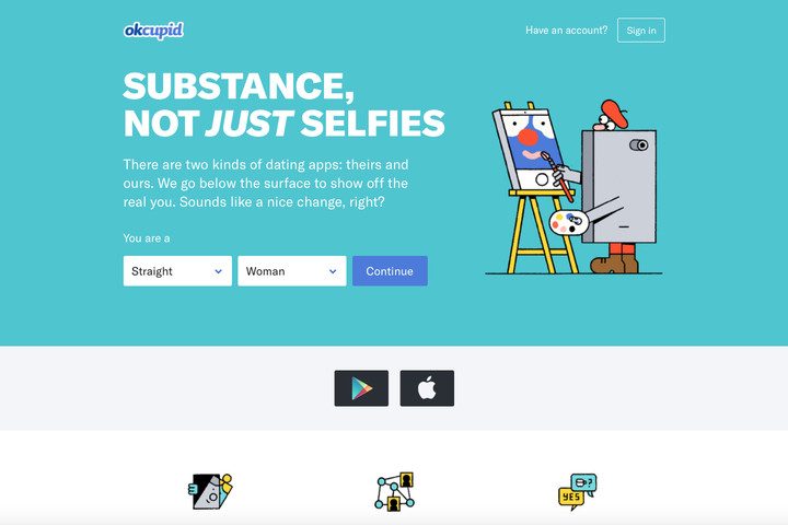OK Cupid está hecha para personas jóvenes y hippies. Es fácil de utilizar y la interfaz es limpia. Si creas una cuenta gratuita, la única información disponible es tu nombre de usuario y tu ubicación, junto con a fotografía. Puedes enviar mensajes que desaparecerán en un rato. Si abres una cuenta paga, tendrás otras características extra como poder navegar y guardar mensajes. OK Cupid afirma que nunca pondré nada en Facebook, pero a veces aparecen cosas así que es mejor que simplemente abras tu cuenta con un correo electrónico.