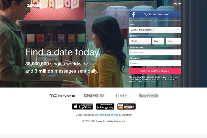 Zoosk atrae más de 20 millones de visitantes al mes. La mitad del tráfico se origina en los Estados Unidos, haciéndolo uno de los servicios más populares en el país. La interfaz es similar a la de los servicios como Tinder y Bumble. Los filtros permiten resultados por etnicidad y otras características físicas, orientación sexual, ubicación, etc. Puedes enviar guiños. La característica Smart Match te hace preguntas como tu interés en tener hijos para poder mejorar las sugerencias. Muchas acciones se hacen a través de “monedas”, las cuales cuestan entre $20  y $100 dólares dependiendo del valor.