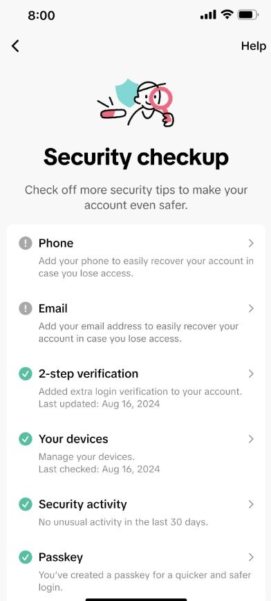 «Security Checkup, una nueva y poderosa herramienta que proporciona un panel de seguridad todo en uno para revisar y actualizar fácilmente la configuración de seguridad de la cuenta. Con su visión clara y completa, los usuarios pueden tomar el control, realizar actualizaciones en segundos y mantenerse seguros y protegidos con confianza», comentó en un comunicado de prensa, Kim Albarella, jefa de seguridad global de TikTok.