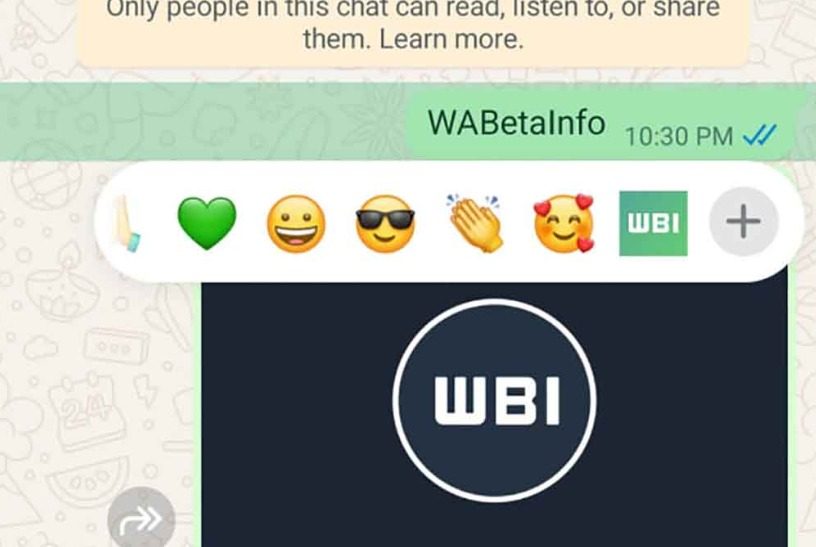 Según WABetaInfo, WhatsApp permitirá a los usuarios seleccionar cualquier pegatina y usarla como reacción en sus chats. Actualmente, los usuarios solo pueden usar un conjunto de emojis para reaccionar a los mensajes. Estos emojis aparecen en una larga bandeja de reacciones.