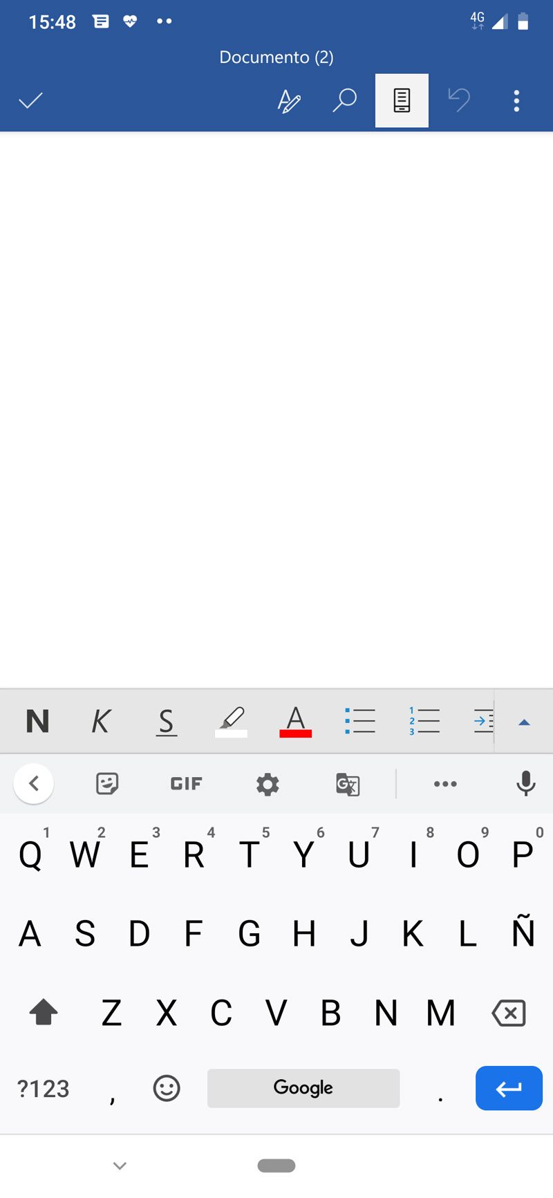 Opté por crear un nuevo archivo en Word solo para tener una idea de su alcance. Para mi sorpresa, la interfaz me resultó sumamente atractiva. A diferencia de la app Documentos de Google, había colores para distinguir distintas herramientas y un menú principal con las opciones Inicio, Insertar, Dibujar, Disposición, Revisar y Vista. Es decir, la experiencia es bastante cercana a la que se tiene con la versión de escritorio de la plataforma de Microsoft.