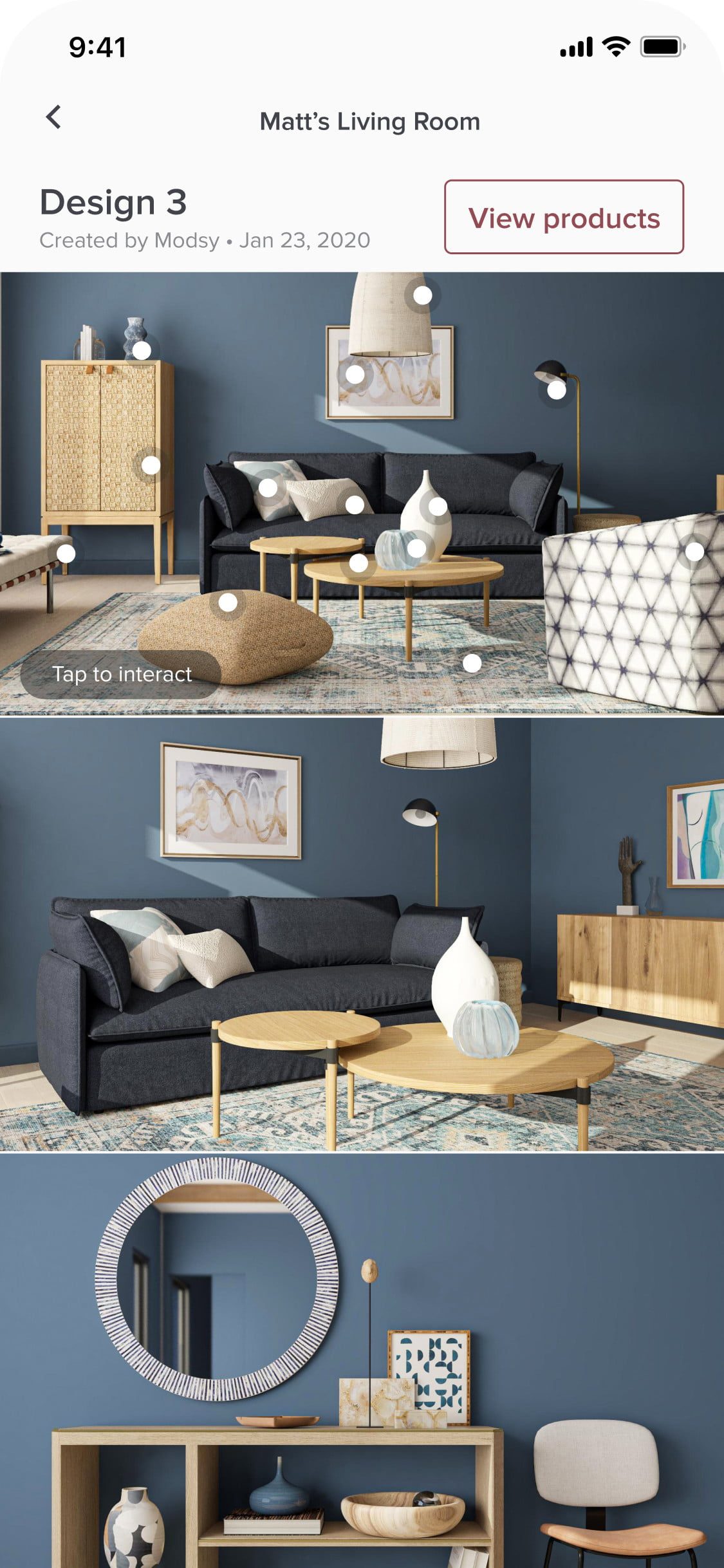 La nueva aplicación Modsy llega desde ambas direcciones. La marca proporciona una manera fácil de obtener ideas de diseño de interiores y comprar un paquete para trabajar con profesionales de diseño y crear la habitación y el hogar que buscas. Trabajar con este programa te permitirá crear tu propio diseño y obtener otros acordes a tu estilo y presupuesto. Por si fuera poco, podrás comprar directamente desde la aplicación, que te ofrecerá ejemplos de miles de diseños seleccionados para explorar y una forma de poder guardar tus favoritos.