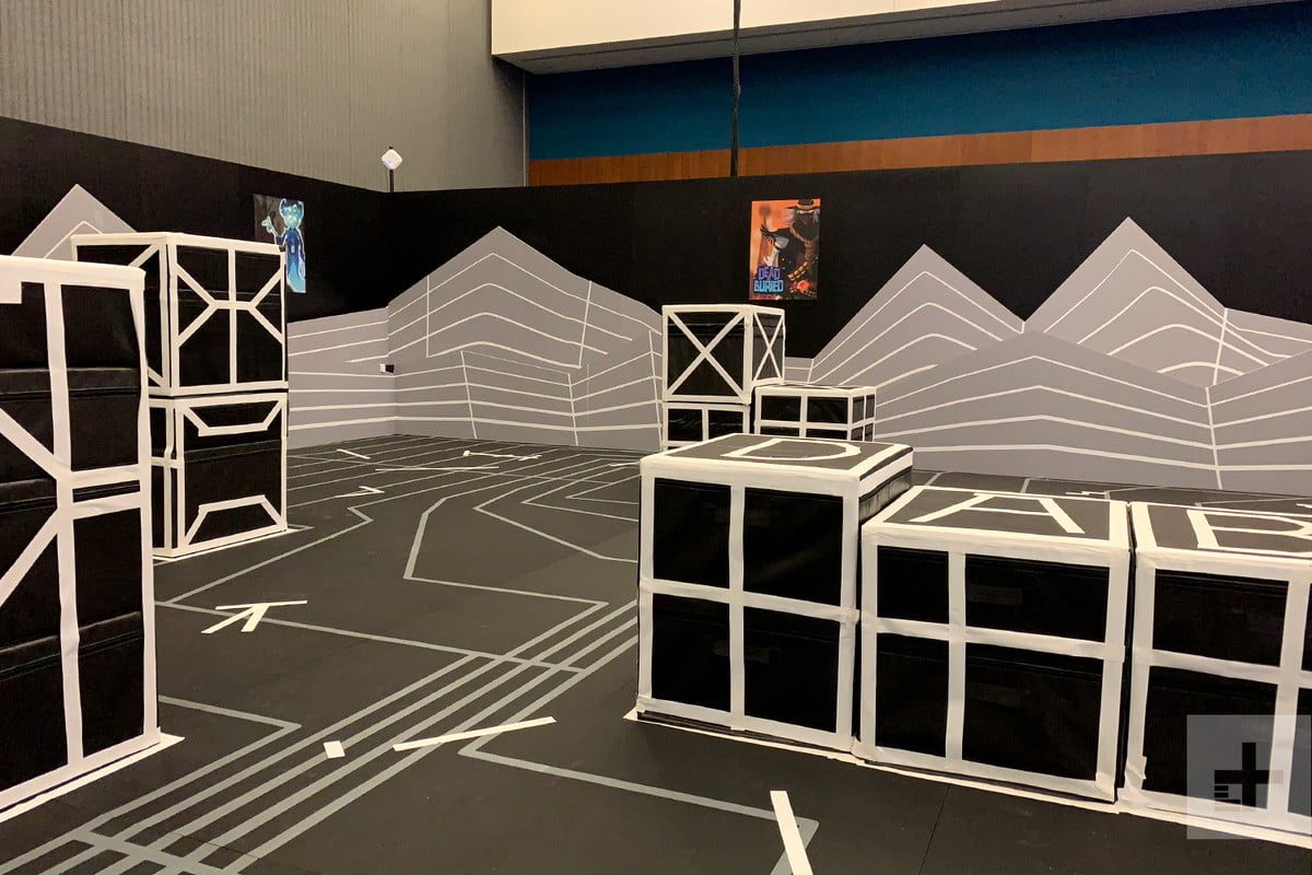 El último demo que nos mostraron fue Dead and Buried, otro gran ejemplo de la mezcla de Quest Insight de realidad aumentada y realidad virtual. Igual que en el Laser Tag, este juego requiere equipos de varios jugadores dispersos en un espacio grande. Quest Insight mapea el terreno y puedes usar cajas como escudos. Presiona una palanca y verás la realidad aumentada – básicamente, contornos del terreno, cajas y a tus compañeros y oponentes. Sin embargo, suelta la palanca y serás transportado a un escenario del viejo oeste. Las cajas se transformarán en cajones de madera y te verás en medio de un combate a balazos con el equipo contrario.