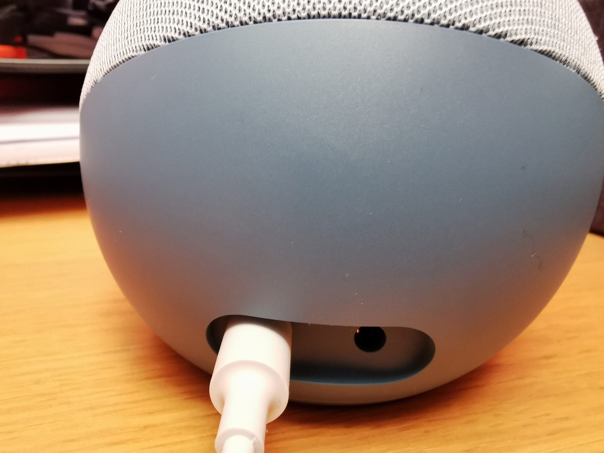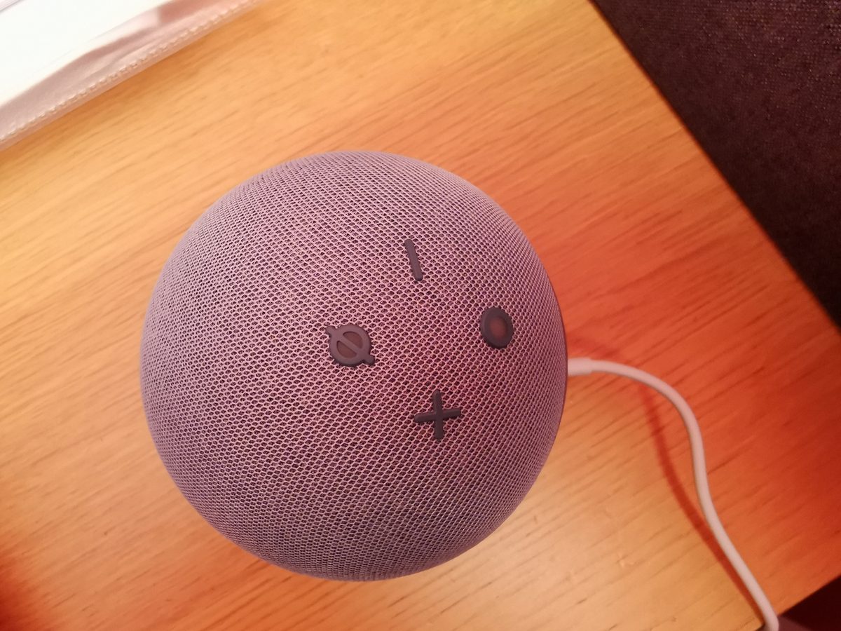 En el interior, por la parte frontal, el Echo Dot integra un altavoz de 1.6 pulgadas. Al poner mi playlist favorita de Spotify, me sorprendió gratamente por su potencia y buen sonido con una balada de Richard Hawley (Coles Corner). Sin embargo, al máximo volumen, el 10 (incluso algo menos según la canción) distorsiona. Al nivel 5 está perfecto para que se escuche en una habitación con una calidad notable. Además de Spotify, también es compatible con Deezer, Apple Music y Apple Podcasts (y Amazon Music y Audible, cómo no).