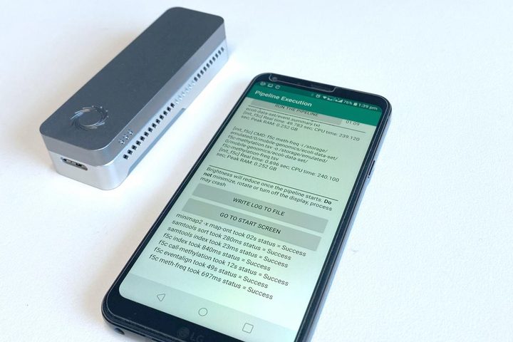La aplicación móvil trabaja en conjunto con un secuenciador de nanoporos del tamaño de una memoria USB —como el secuenciador MinION de Oxford Nanopore Technologies—, que permite secuenciar el material genético de una muestra biológica fuera de un laboratorio.