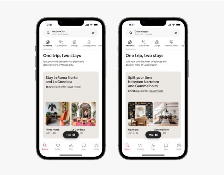 Por otro lado, las estadías divididas permitirán que un usuario pueda reservar sin compromiso dos propiedades en una misma ventana de tiempo, en caso de querer un cambio de ambiente o de problemas en alguno de los lugares escogidos.