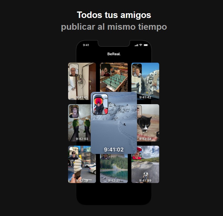“Todos los días a una hora diferente, todos son notificados simultáneamente para capturar y compartir una foto en 2 minutos. Una forma nueva y única de descubrir quiénes son realmente tus amigos en su vida diaria”, supone el leit motiv de la app.