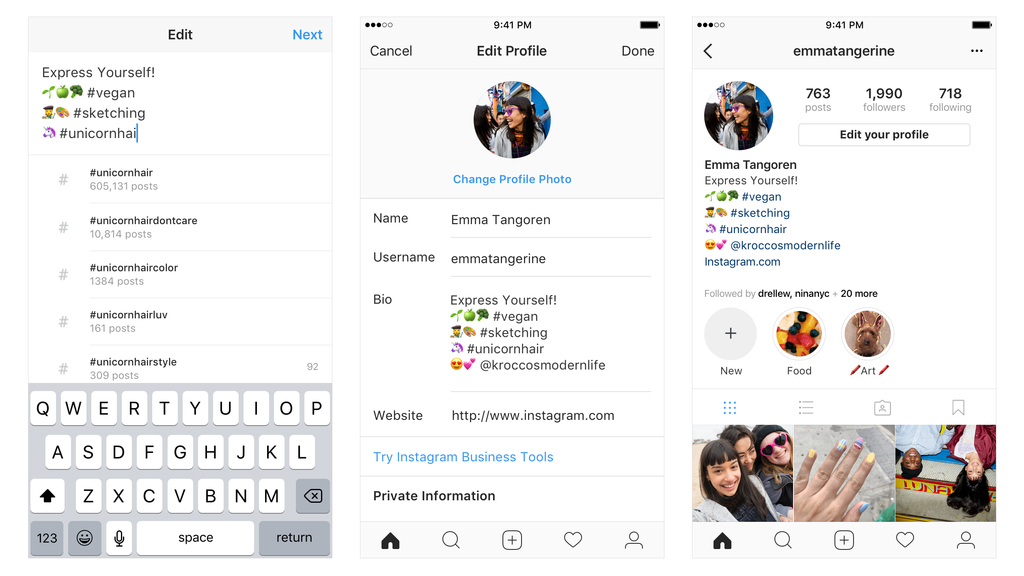 El cambio llega un día después de que Instagram anunciara la habilidad de crear hashtags y menciones dentro de las biografías. La actualización te permitirá crear hashtags o links a otras biografías que pueden ser pulsados y tendrás la opción de quitarlo si así lo quieres.
