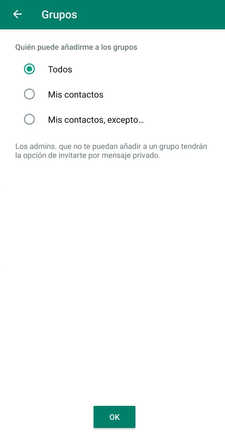 - En la siguiente pantalla, escoge quiénes te pueden agregar a grupos: