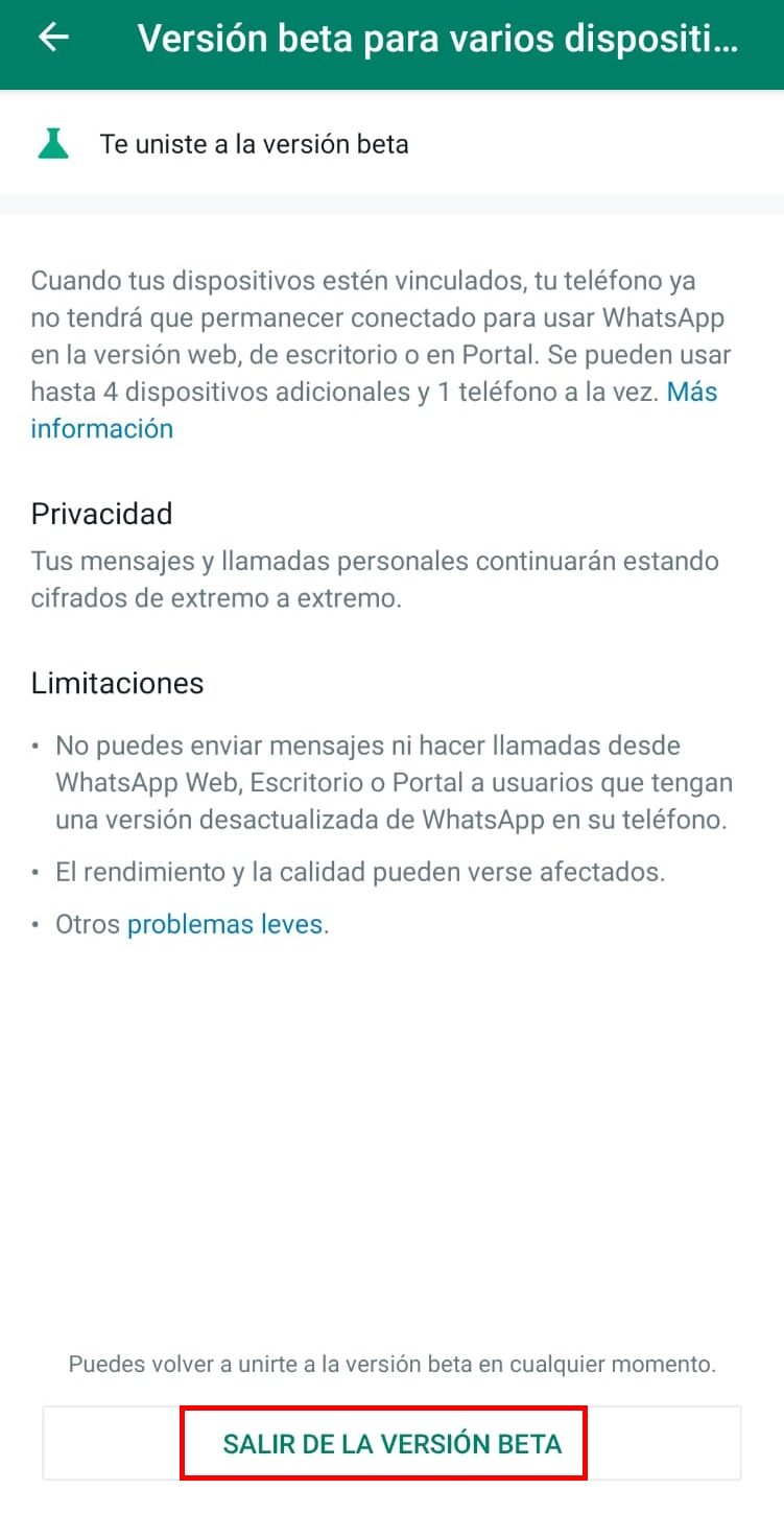 Otro elemento que debes tener en consideración es que si no usas WhatsApp en el teléfono principal durante más de 14 días, todos los dispositivos que hayas vinculado se desconectarán en automático.